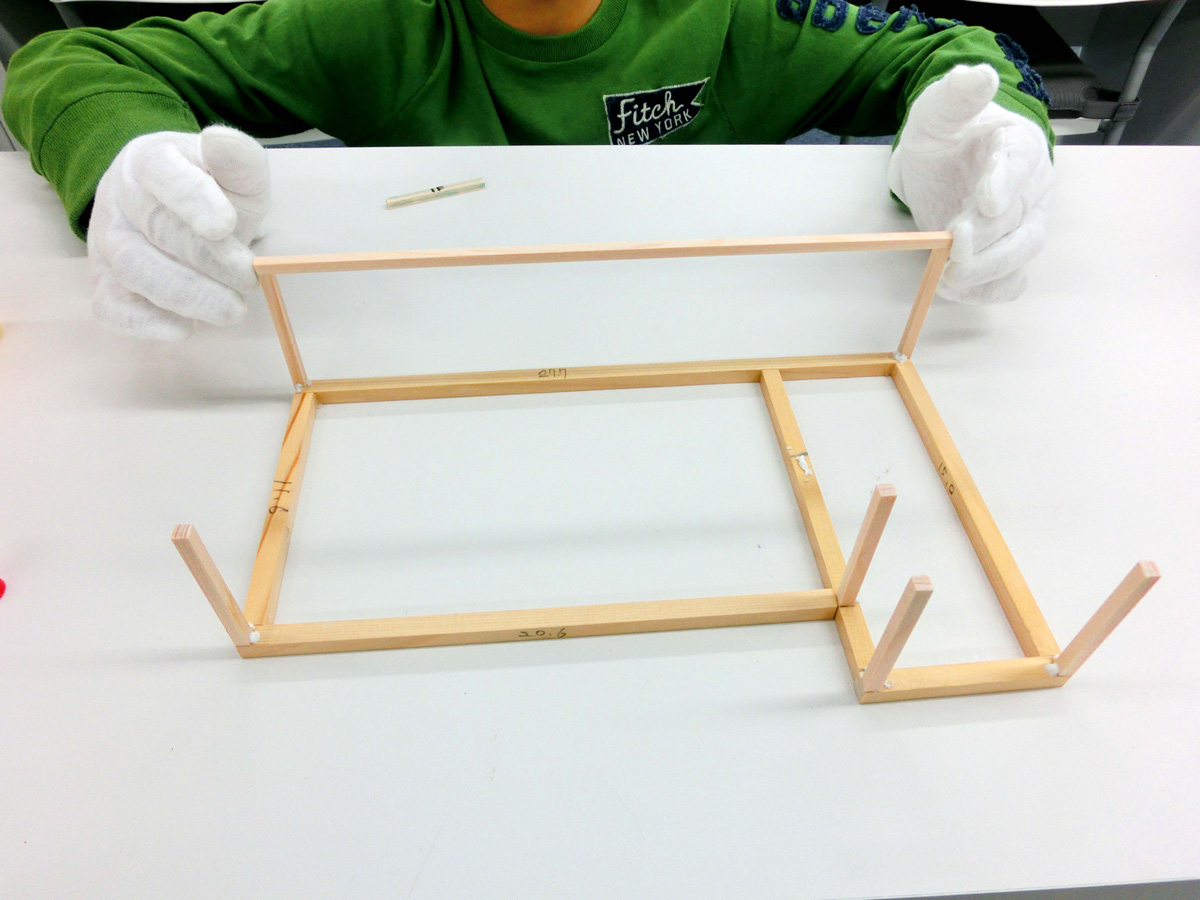 ・角材を切って、ボンドで付けて家の模型を完成させましょう。1mm単位での精度を追及します。 緻密さが身についてくれば計算ミスも減りますし、忘れ物も減ります。